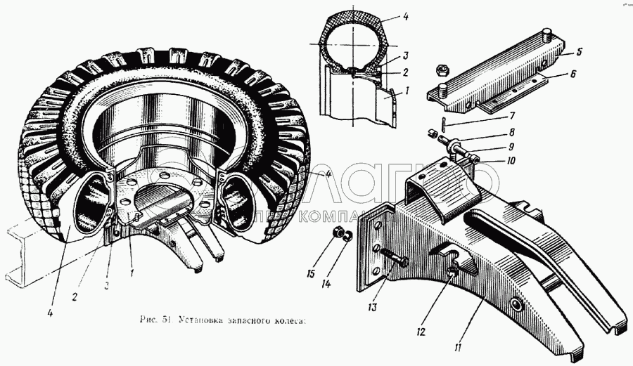 Каталог запасных частей к технике: ЗИЛ-133ГЯ. Установка запасного колеса
