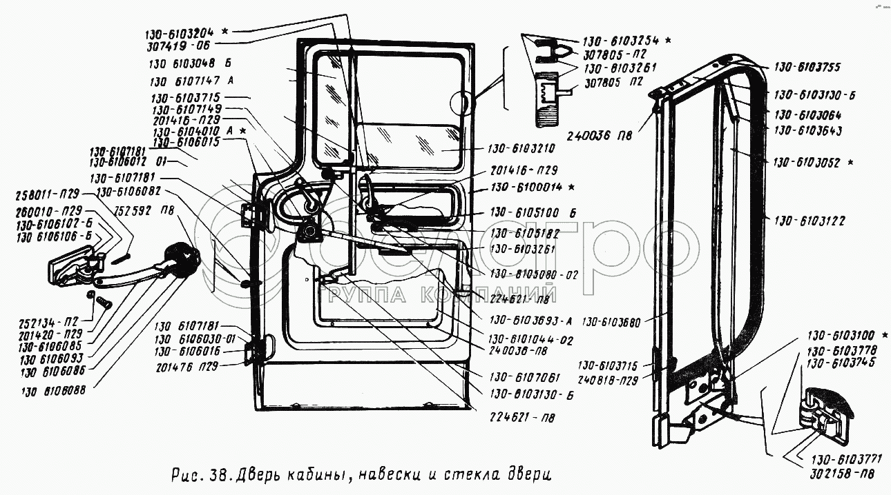 Каталог запасных частей к технике: ЗИЛ-431410 (130). Дверь кабины, навески и стекла двери