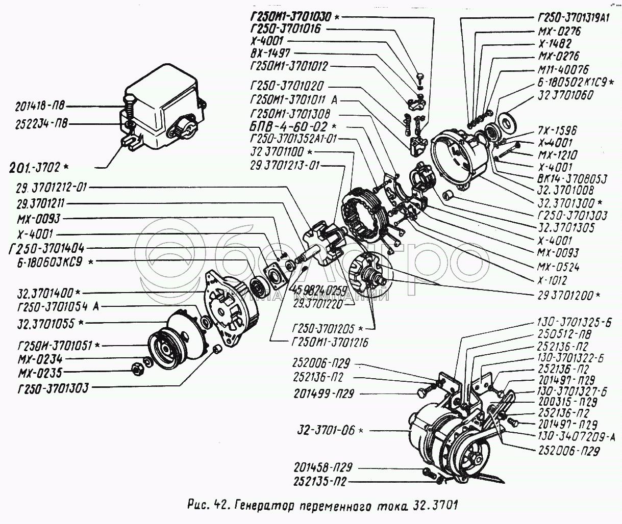 Каталог запасных частей к технике: ЗИЛ-431410 (130). Генератор переменного тока 32.3701