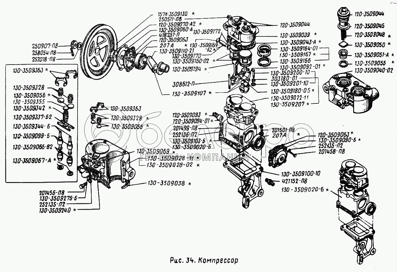 Каталог запасных частей к технике: ЗИЛ-431410 (130). Компрессор