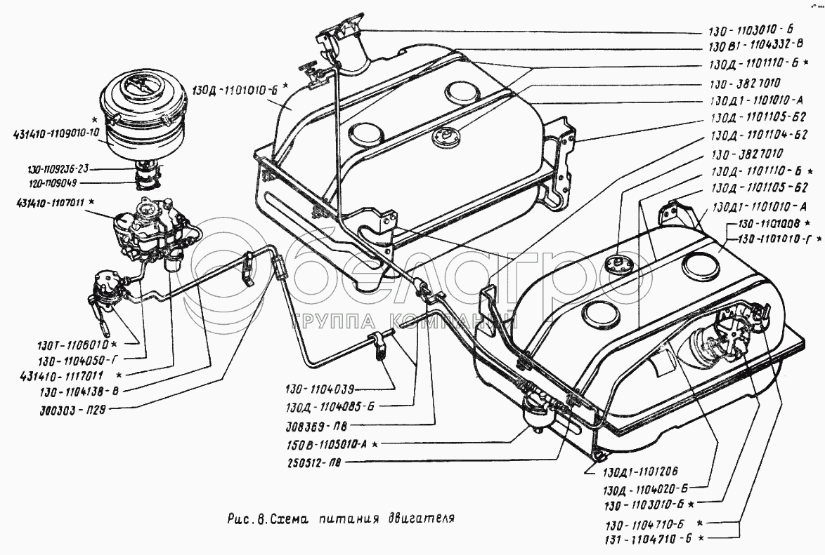 Каталог запасных частей к технике: ЗИЛ-431410 (130). Схема питания двигателя