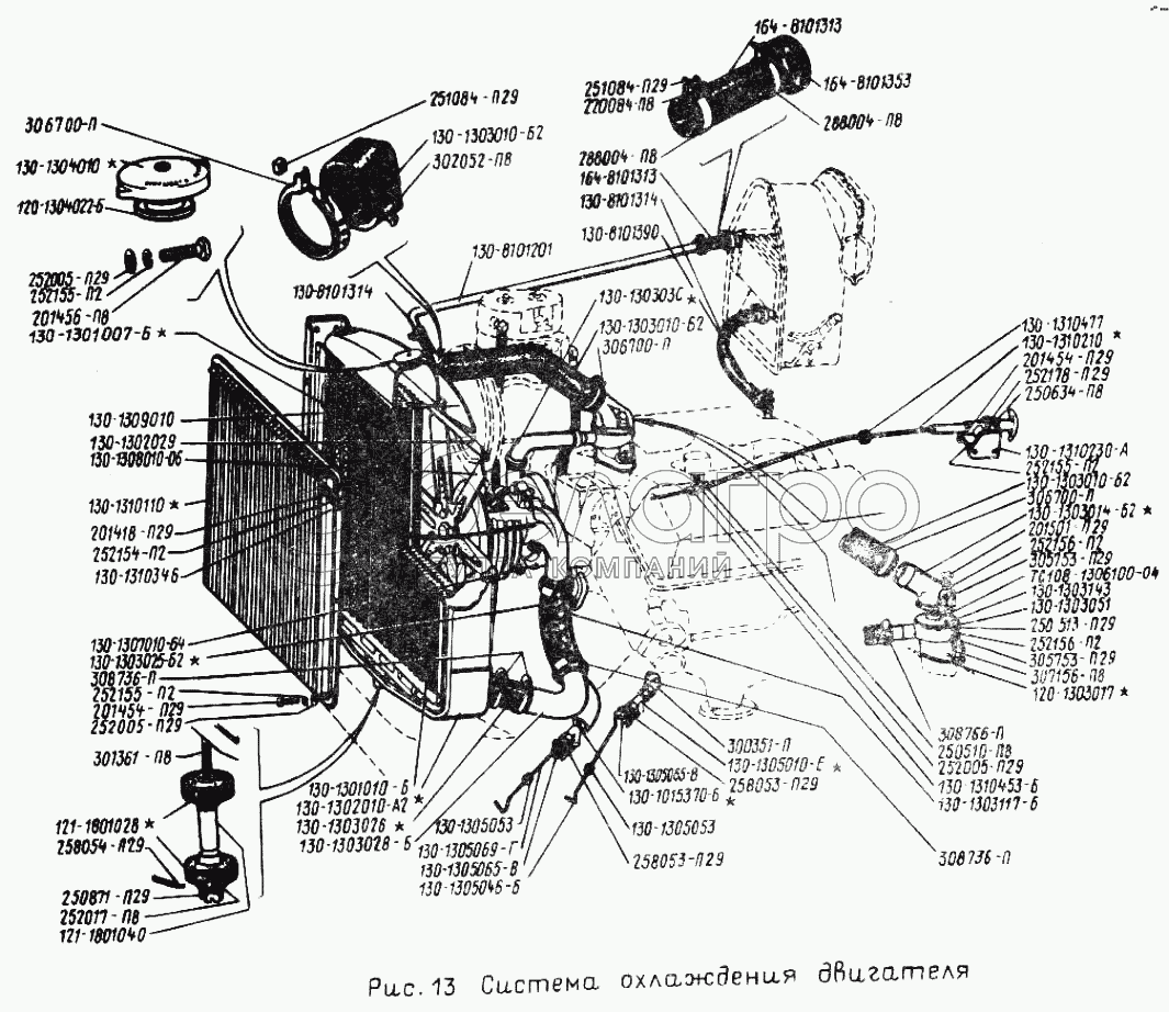 Каталог запасных частей к технике: ЗИЛ-431410 (130). Система охлаждения двигателя
