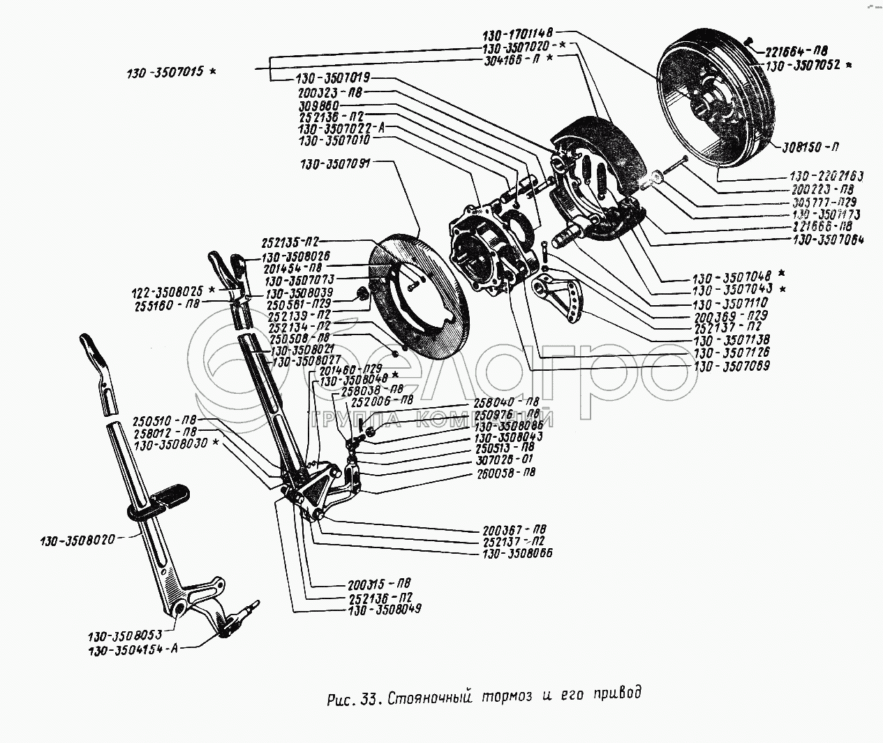 Каталог запасных частей к технике: ЗИЛ-431410 (130). Стояночный тормоз и его привод