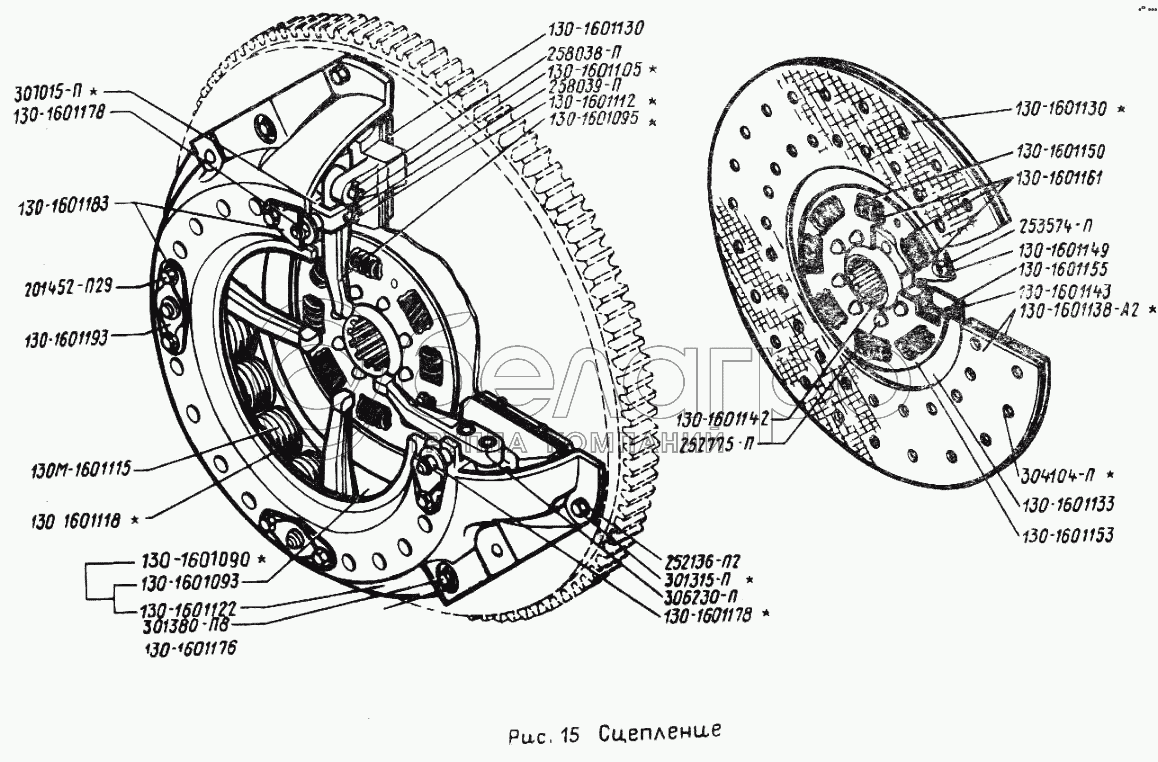 Каталог запасных частей к технике: ЗИЛ-431410 (130). Сцепление
