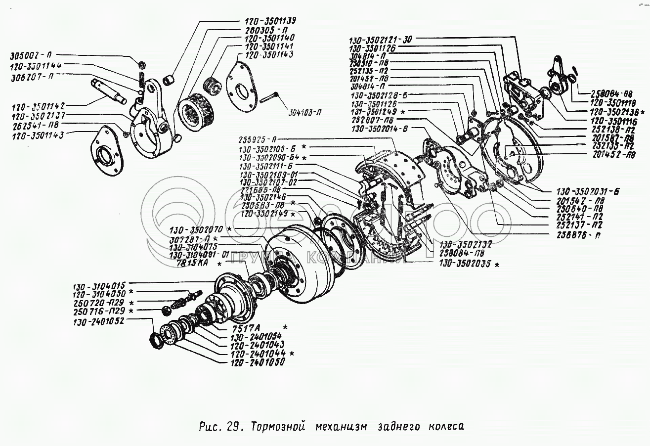 Каталог запасных частей к технике: ЗИЛ-431410 (130). Тормозной механизм заднего колеса
