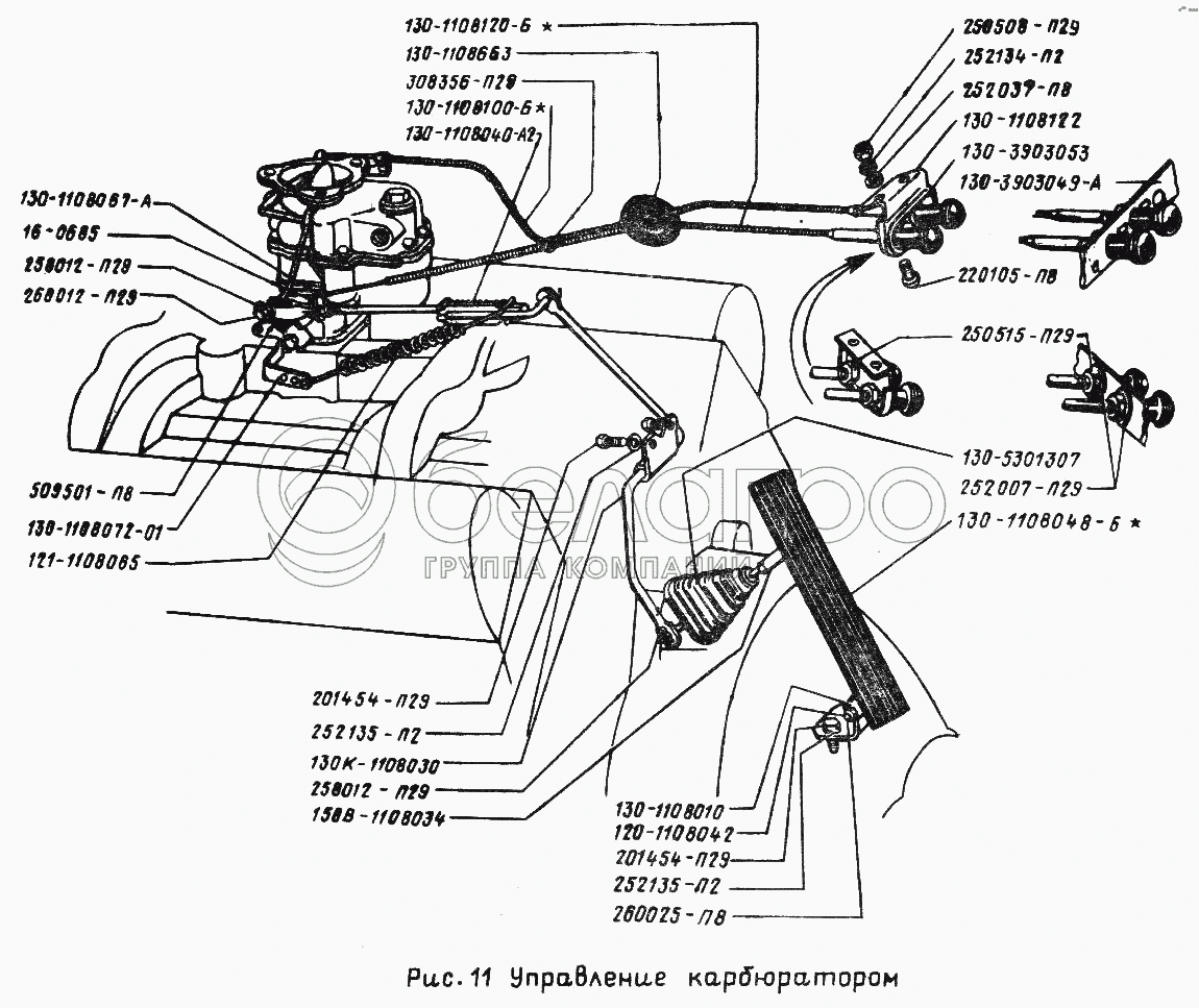 Каталог запасных частей к технике: ЗИЛ-431410 (130). Управление карбюратором