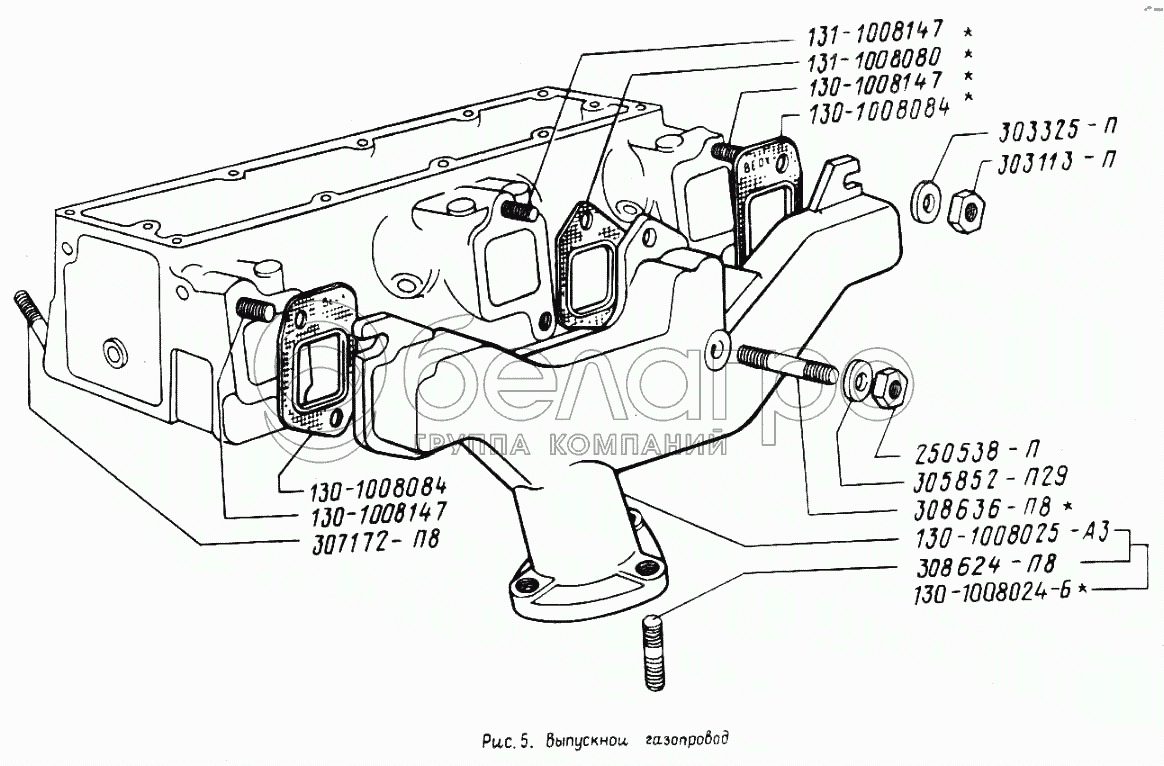 Каталог запасных частей к технике: ЗИЛ-431410 (130). Выпускной газопровод