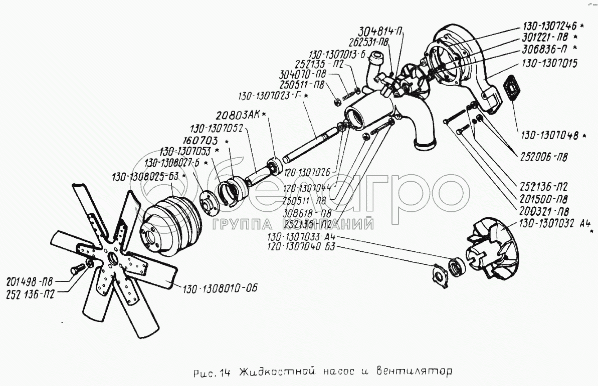 Каталог запасных частей к технике: ЗИЛ-431410 (130). Жидкостный насос и вентилятор