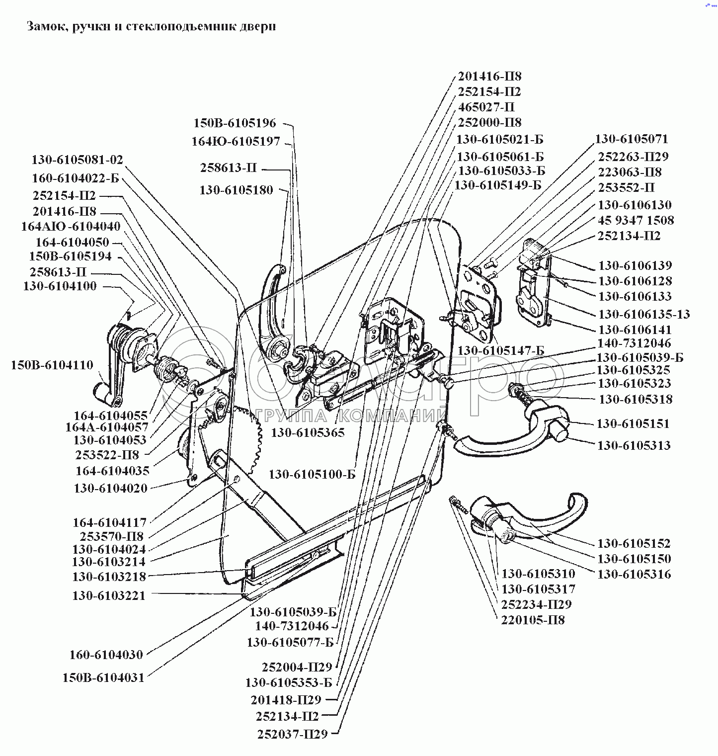 Каталог запасных частей к технике: ЗИЛ-431416. Двери\Замок, ручки и стеклоподъемник двери