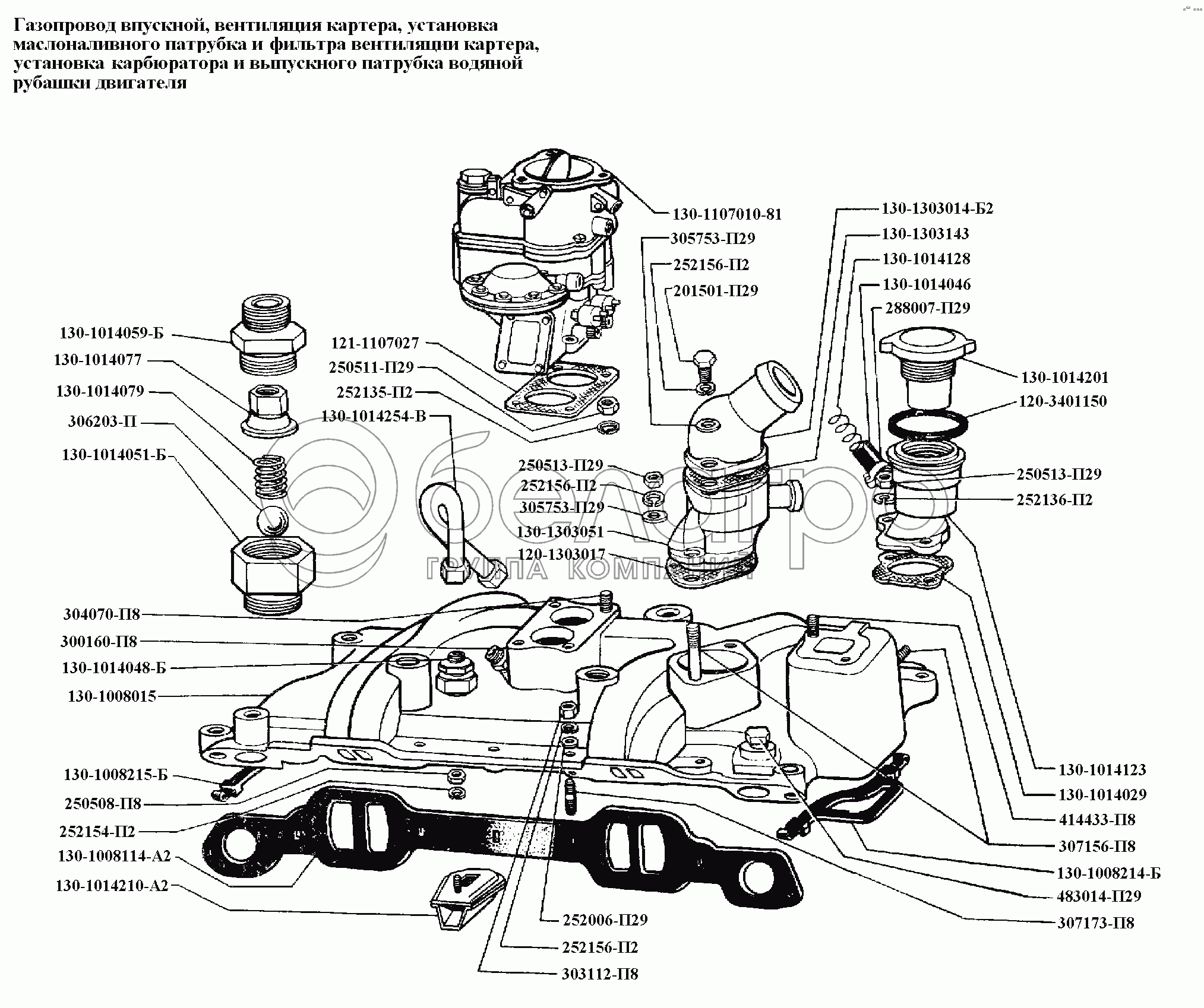 Каталог запасных частей к технике: ЗИЛ-431416. Двигатель\Газопровод впускной,