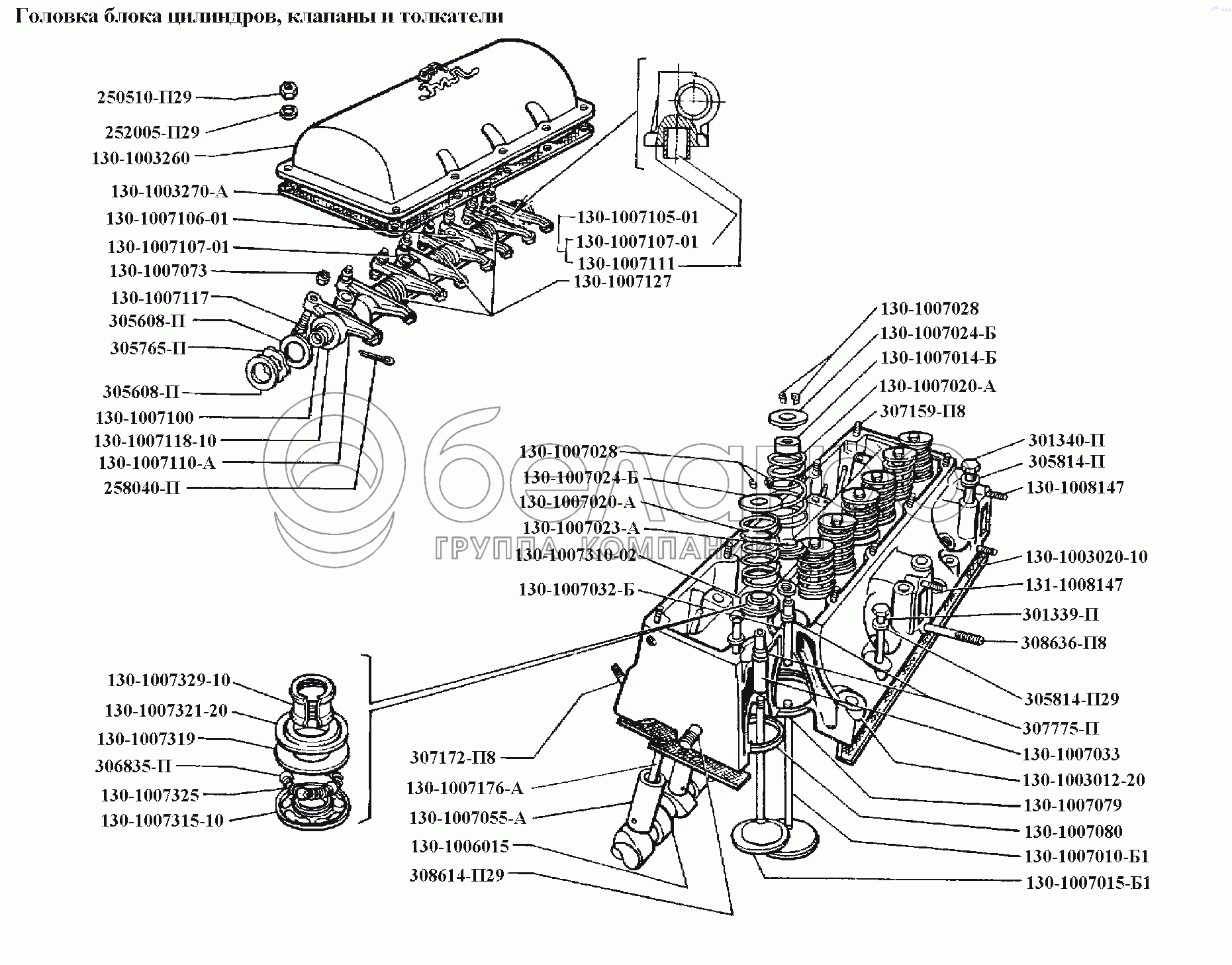 Каталог запасных частей к технике: ЗИЛ-431416. Двигатель\Головка блока цилиндров, клапаны и толкатели