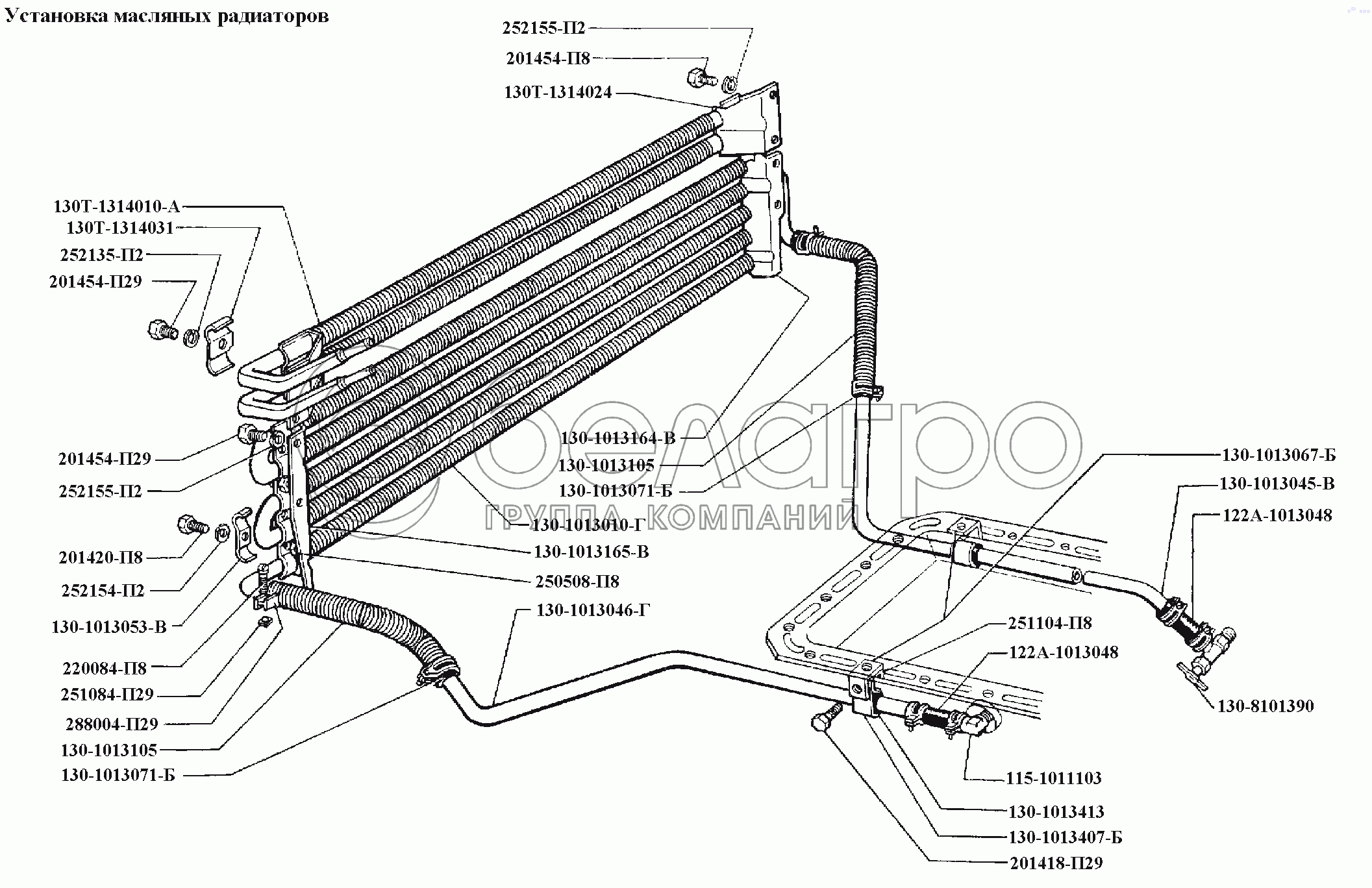 Каталог запасных частей к технике: ЗИЛ-431416. Двигатель\Установка масляных радиаторов