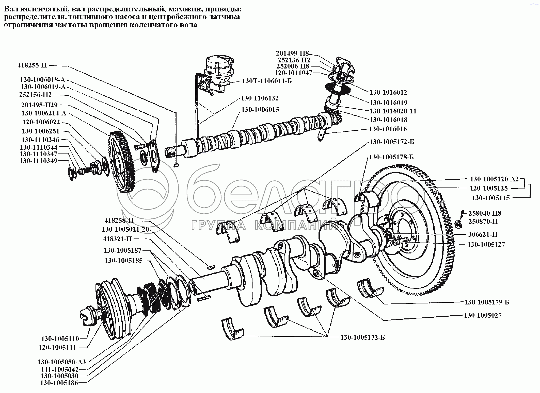 Каталог запасных частей к технике: ЗИЛ-431416. Двигатель\Вал коленчатый, вал распределительный, маховик, приводы