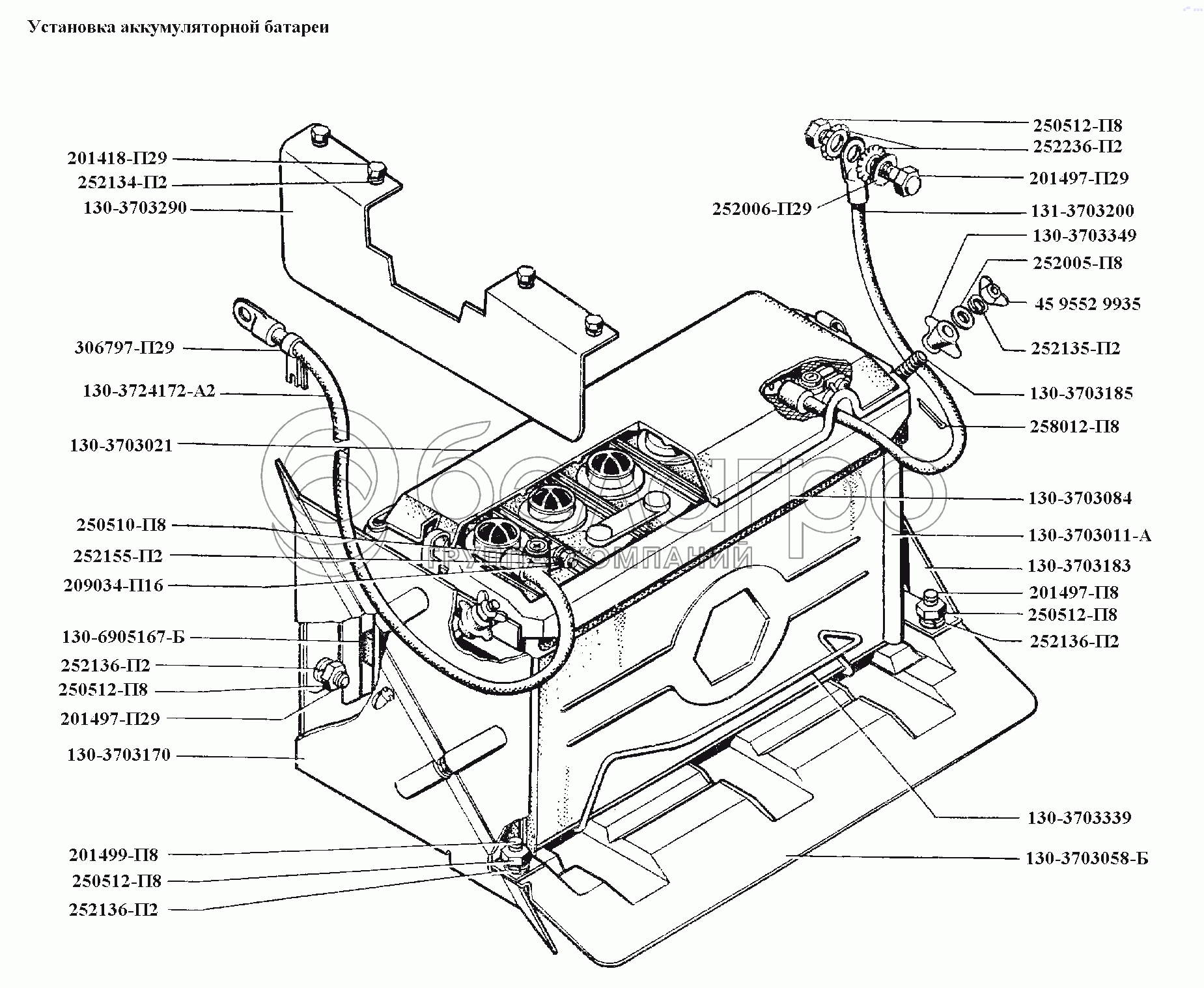 Каталог запасных частей к технике: ЗИЛ-431416. Электрооборудование\Установка аккумуляторной батареи