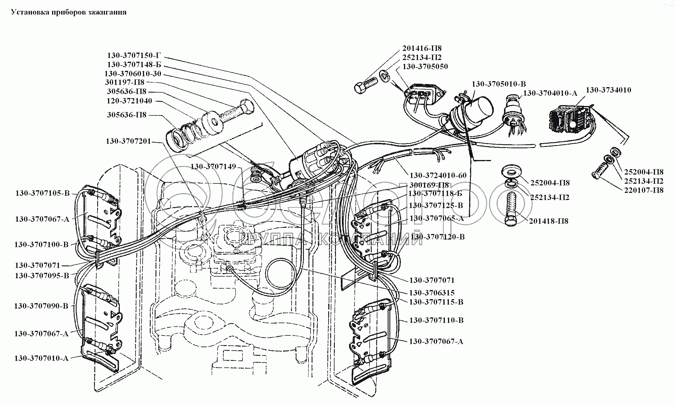 Каталог запасных частей к технике: ЗИЛ-431416. Электрооборудование\Установка приборов зажигания