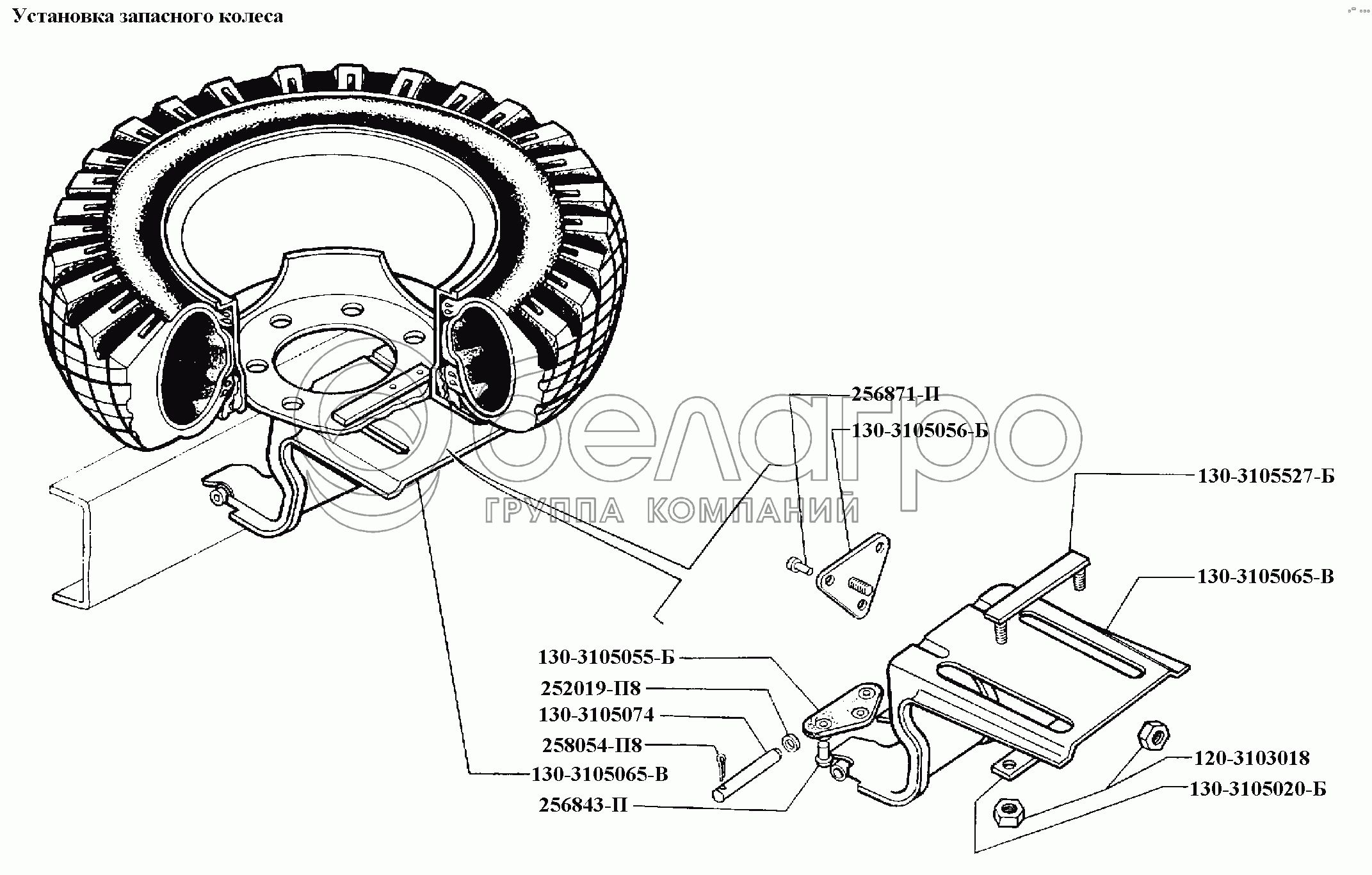 Каталог запасных частей к технике: ЗИЛ-431416. Колеса и ступицы\Установка запасного колеса