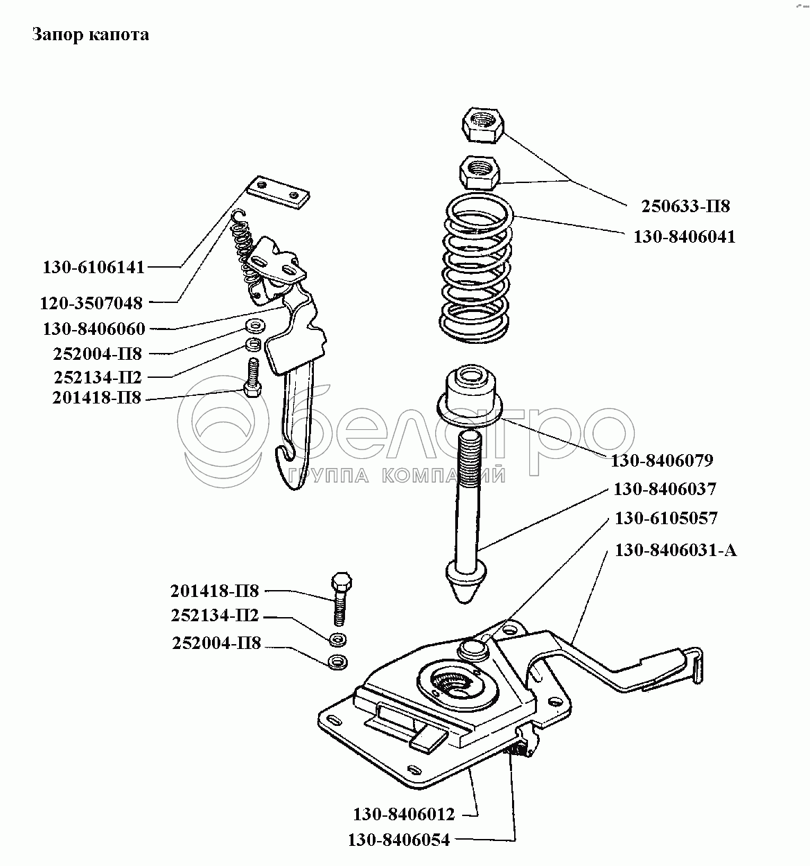 Каталог запасных частей к технике: ЗИЛ-431416. Оперение\Запор капота