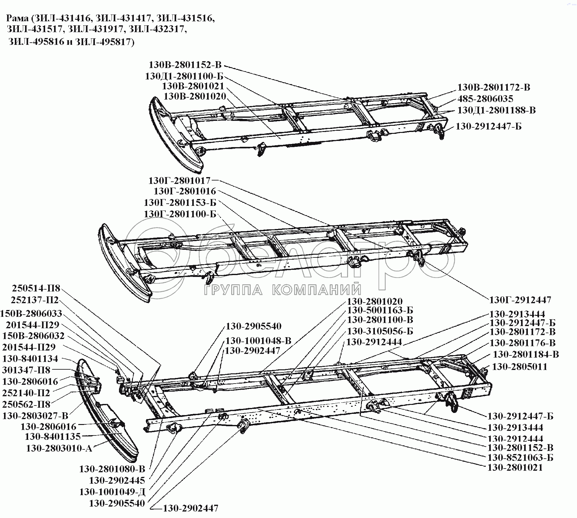 Каталог запасных частей к технике: ЗИЛ-431416. Рама\Рама