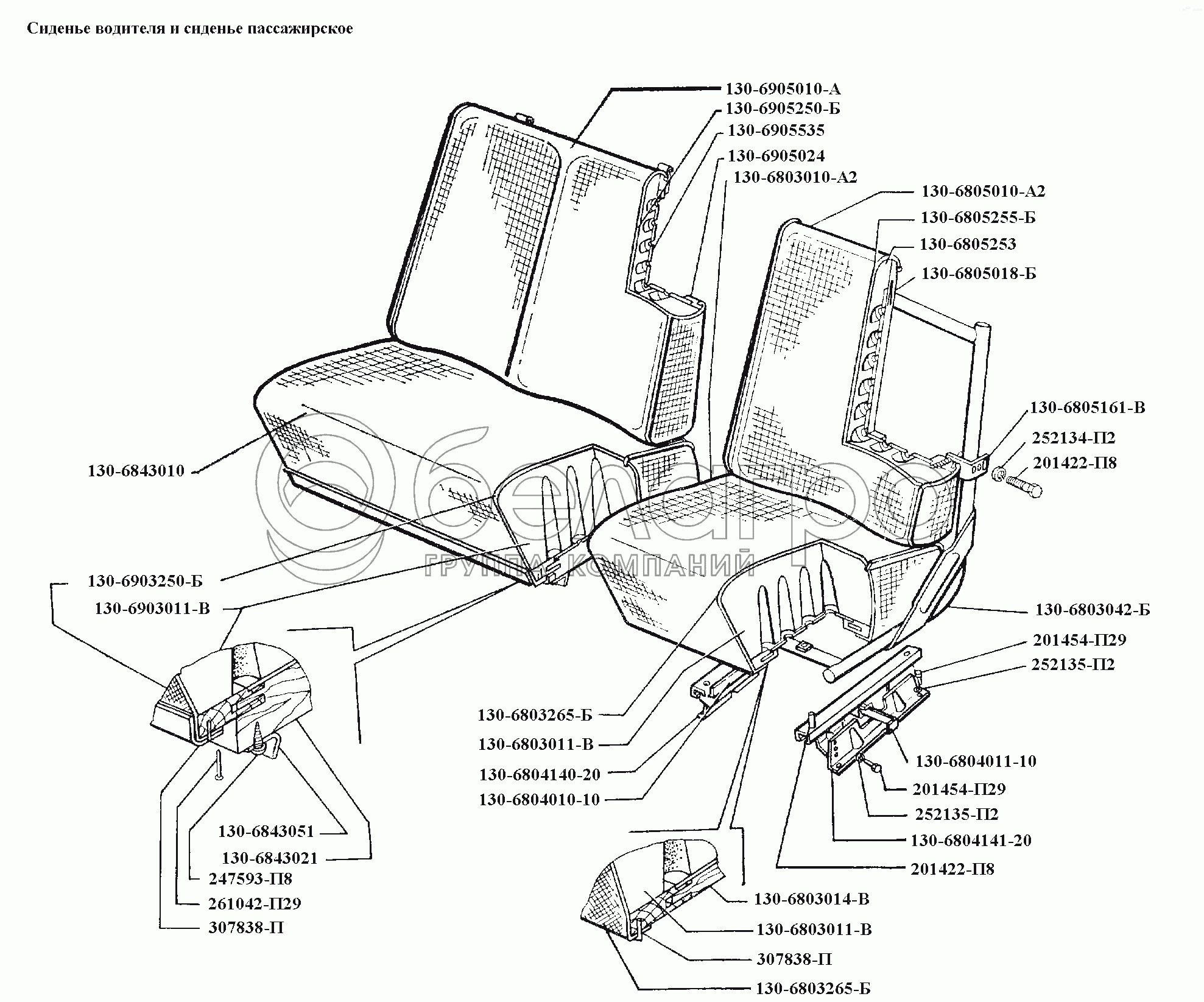 Каталог запасных частей к технике: ЗИЛ-431416. Сиденья\Сиденье водителя и сиденье пассажирское