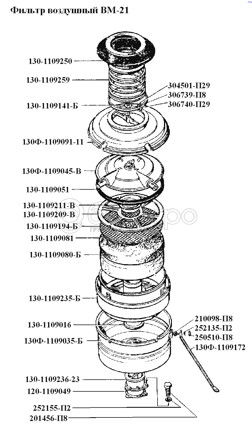 Каталог запасных частей к технике: ЗИЛ-431416. Система питания\Фильтр воздушный ВМ-21