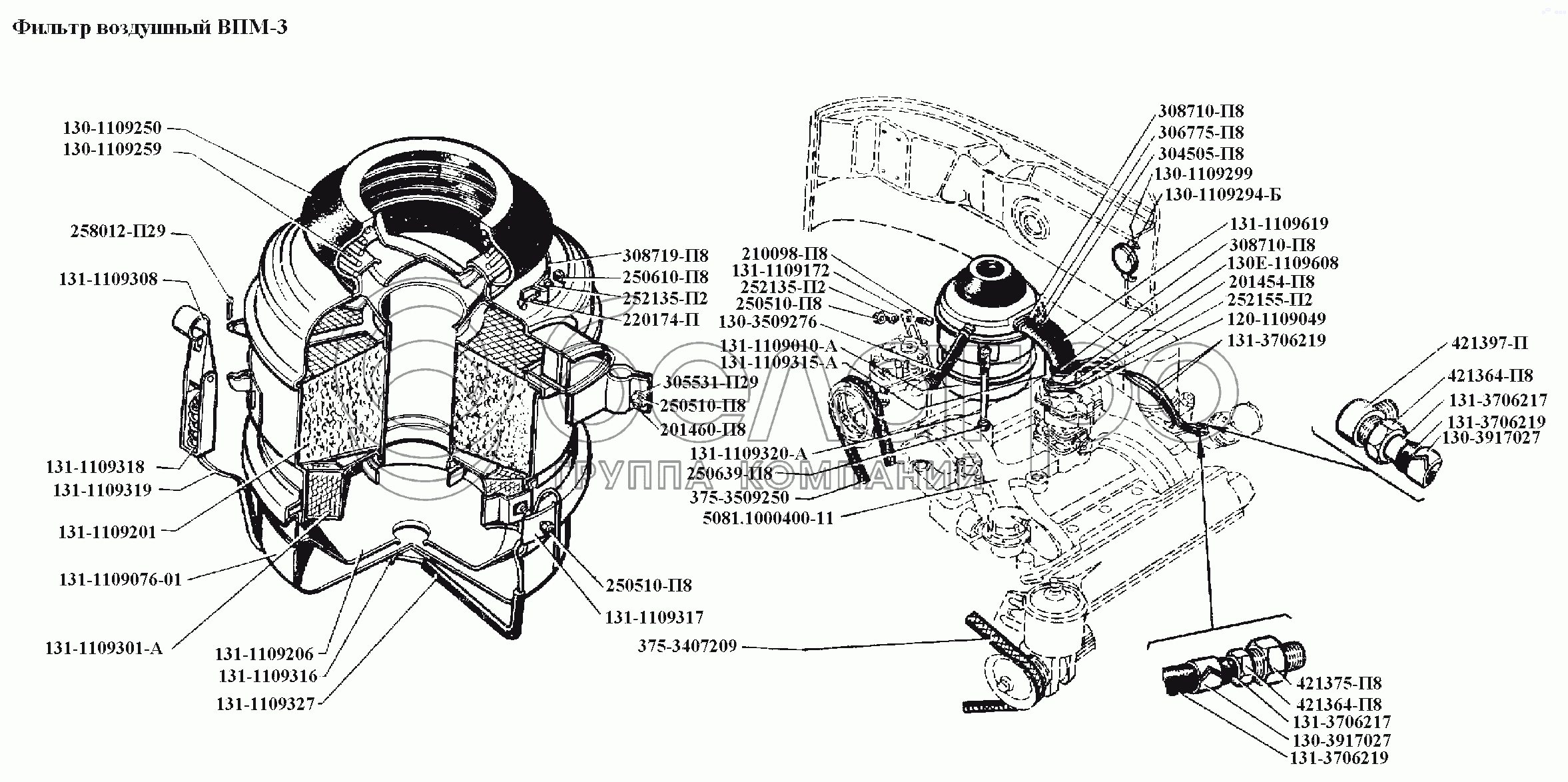 Каталог запасных частей к технике: ЗИЛ-431416. Система питания\Фильтр воздушный ВПМ-3