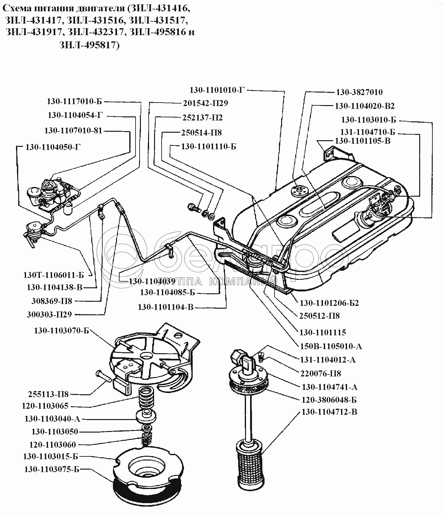 Каталог запасных частей к технике: ЗИЛ-431416. Система питания\Схема питания двигателя