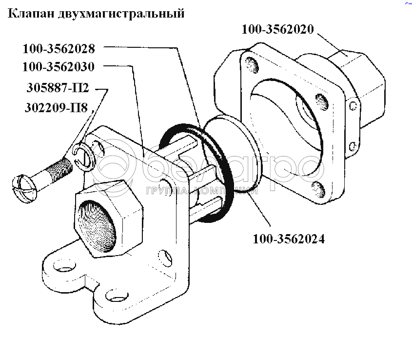 Каталог запасных частей к технике: ЗИЛ-431416. Тормоза\Клапан двухмагистральный