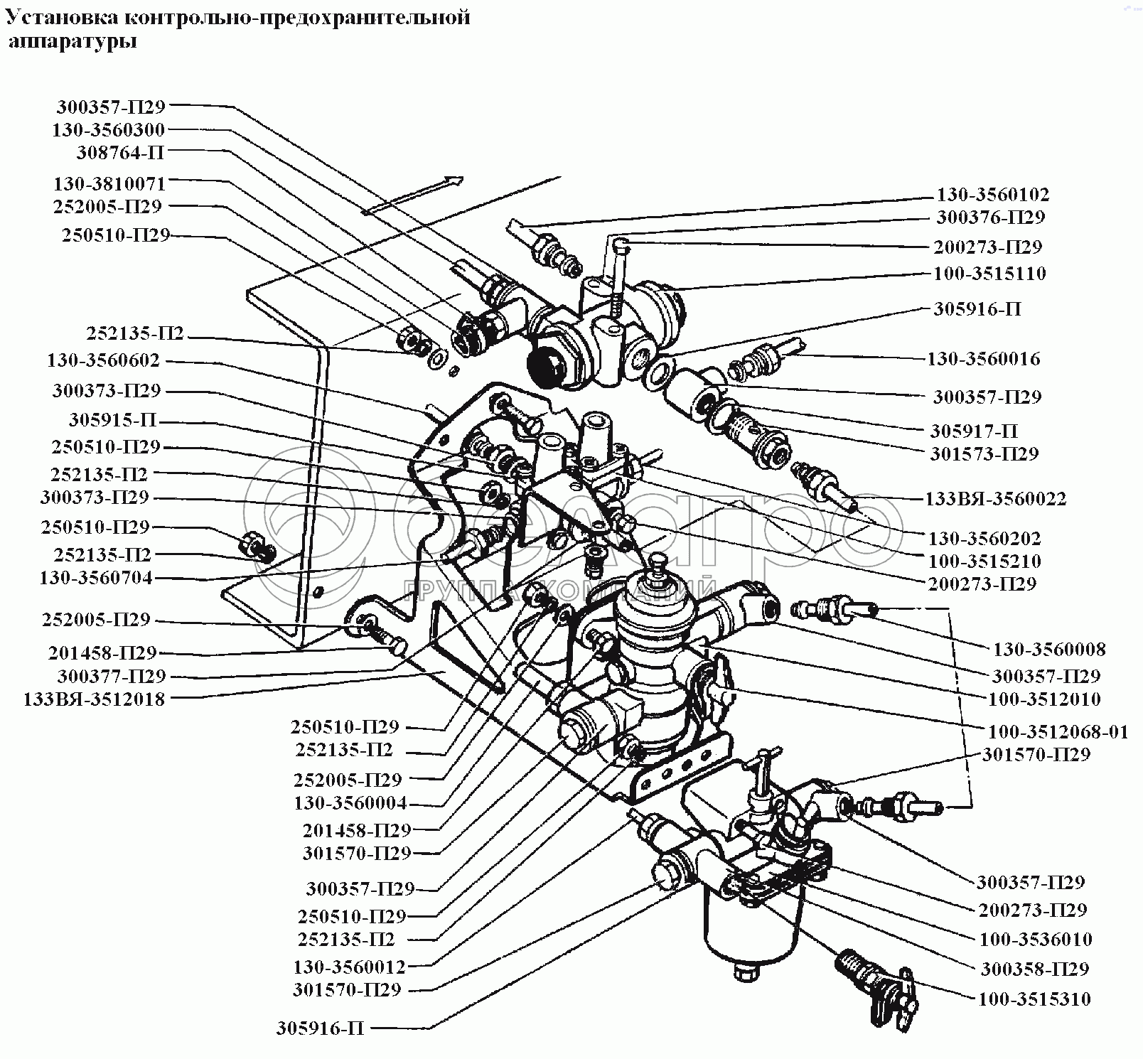 Каталог запасных частей к технике: ЗИЛ-431416. Тормоза\Установка контрольно-предохранительной аппаратуры