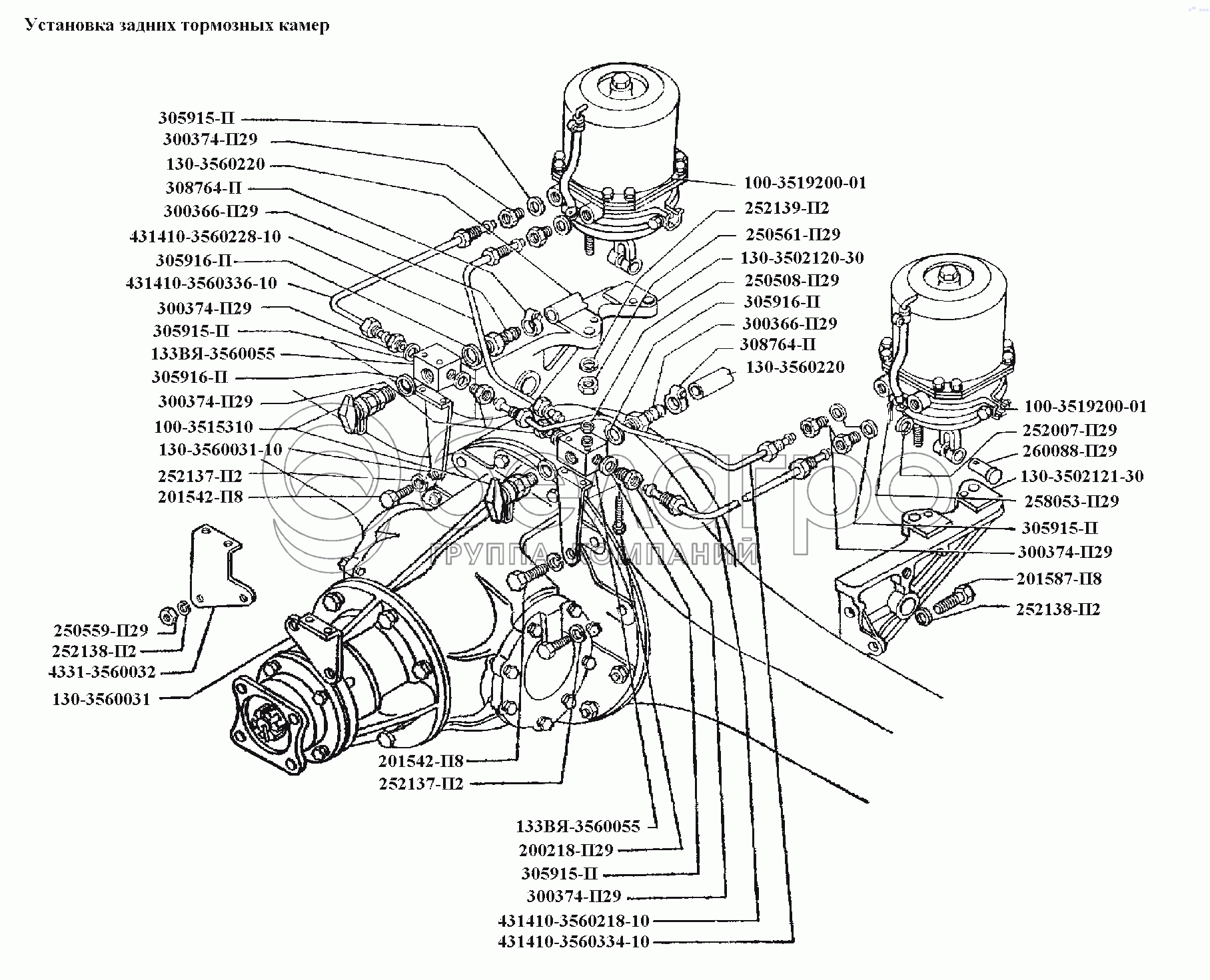 Каталог запасных частей к технике: ЗИЛ-431416. Тормоза\Установка задних тормозных камер
