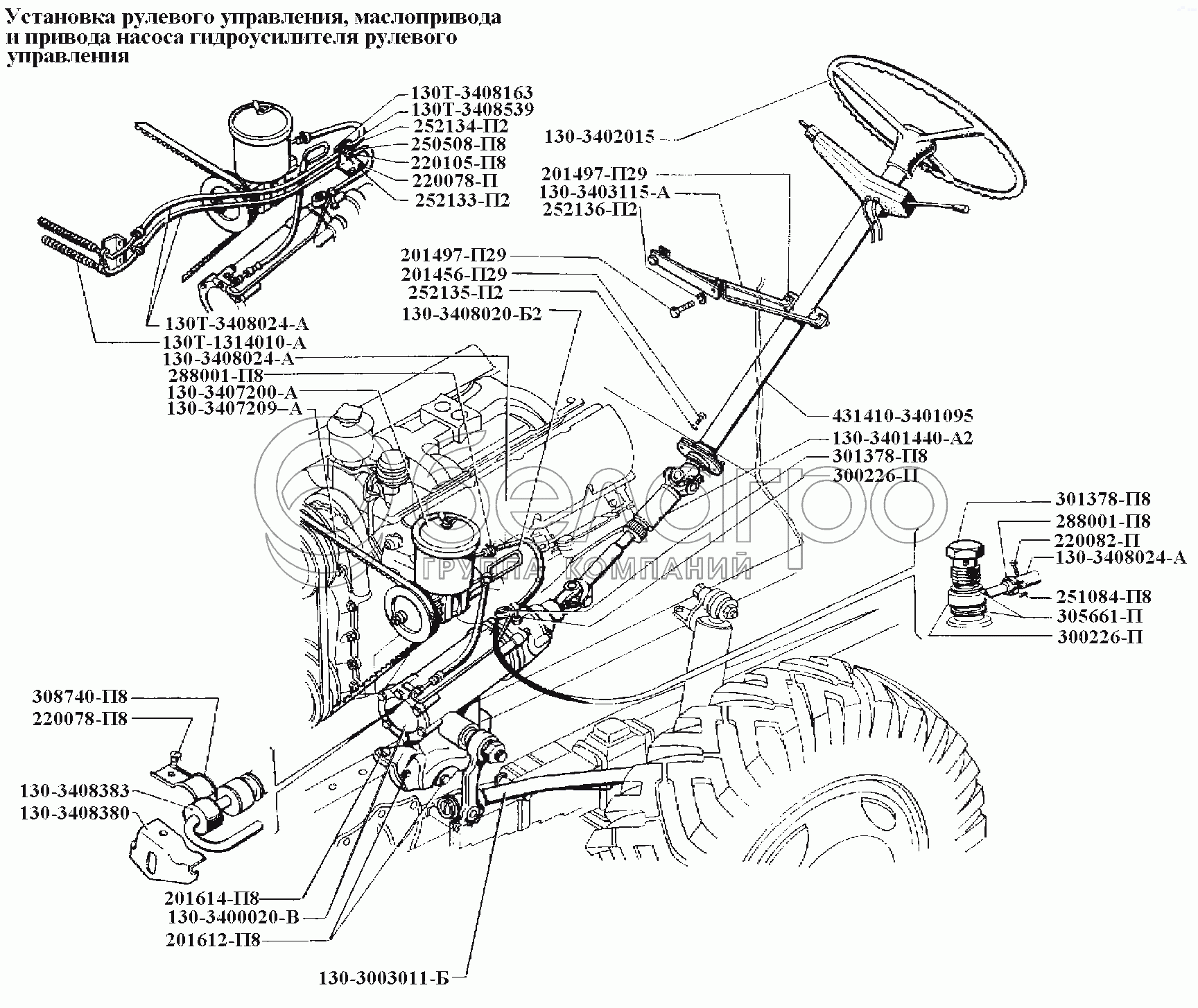 Каталог запасных частей к технике: ЗИЛ-431416. Управление рулевое\Установка рулевого управления