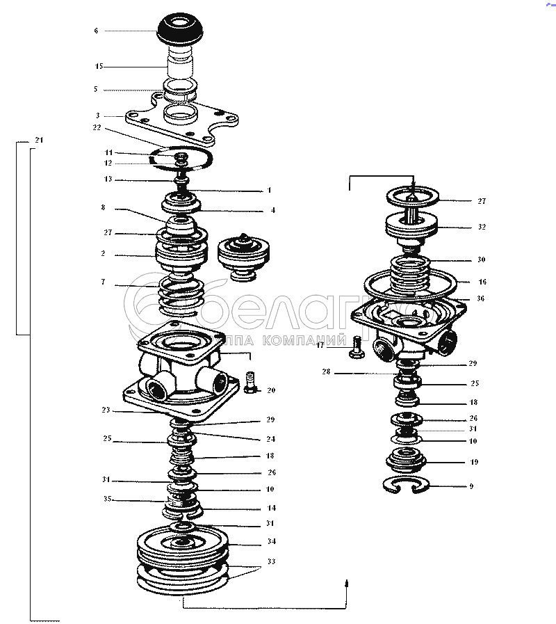Каталог запасных частей к технике: ЗИЛ-43272Н, 43273Н. Двухсекционный тормозной кран