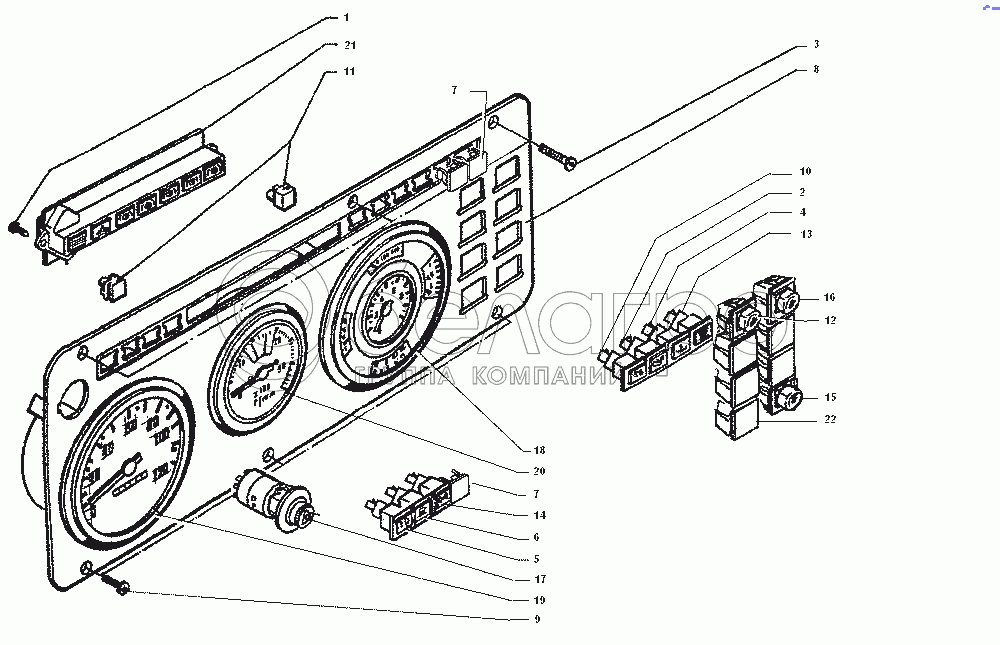 Каталог запасных частей к технике: ЗИЛ-43272Н, 43273Н. Щиток приборов автомобиля