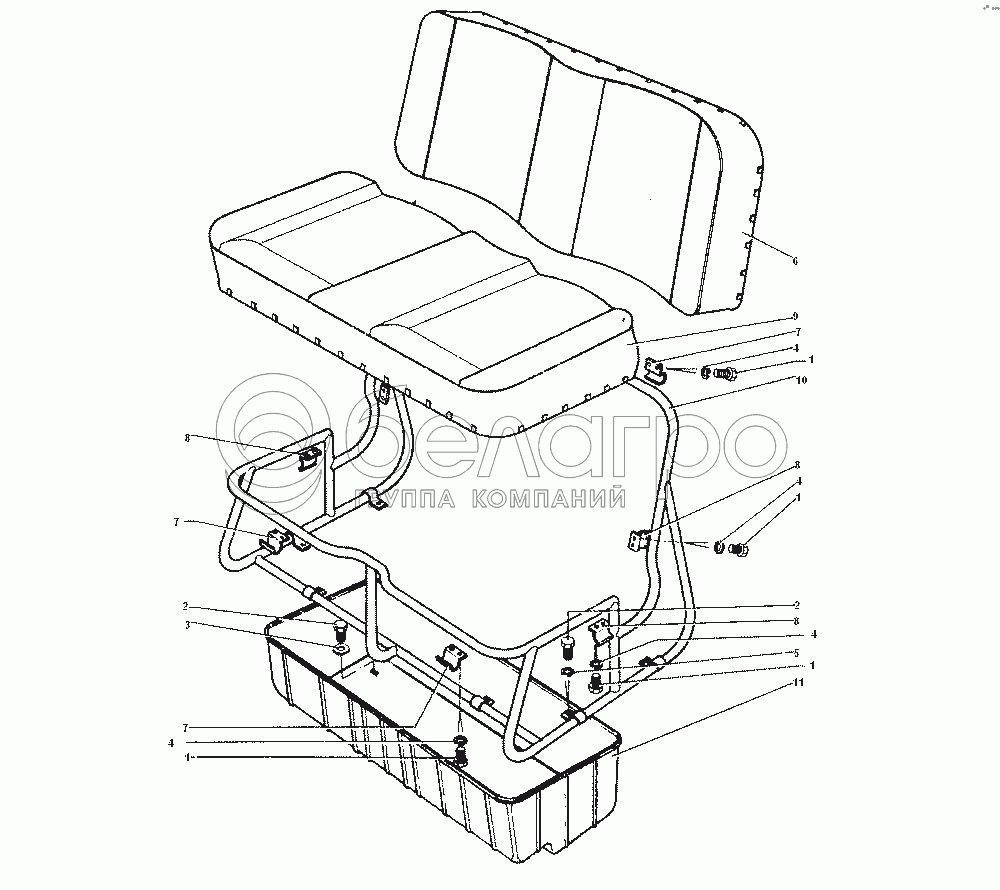 Каталог запасных частей к технике: ЗИЛ-43272Н, 43273Н. Сиденье двухместное