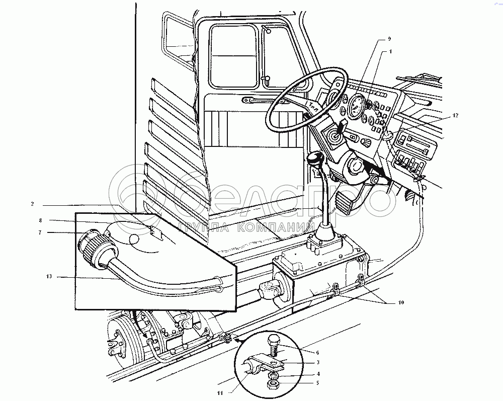 Каталог запасных частей к технике: ЗИЛ-43272Н, 43273Н. Установка гибкого вала привода спидометра
