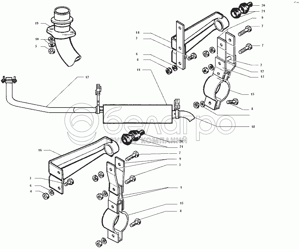 Каталог запасных частей к технике: ЗИЛ-43272Н, 43273Н. Установка системы выхлопа отработавших газов