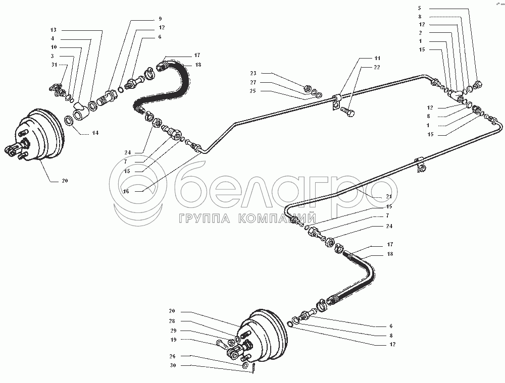 Каталог запасных частей к технике: ЗИЛ-43272Н, 43273Н. Установка трубопроводов передних тормозных камер