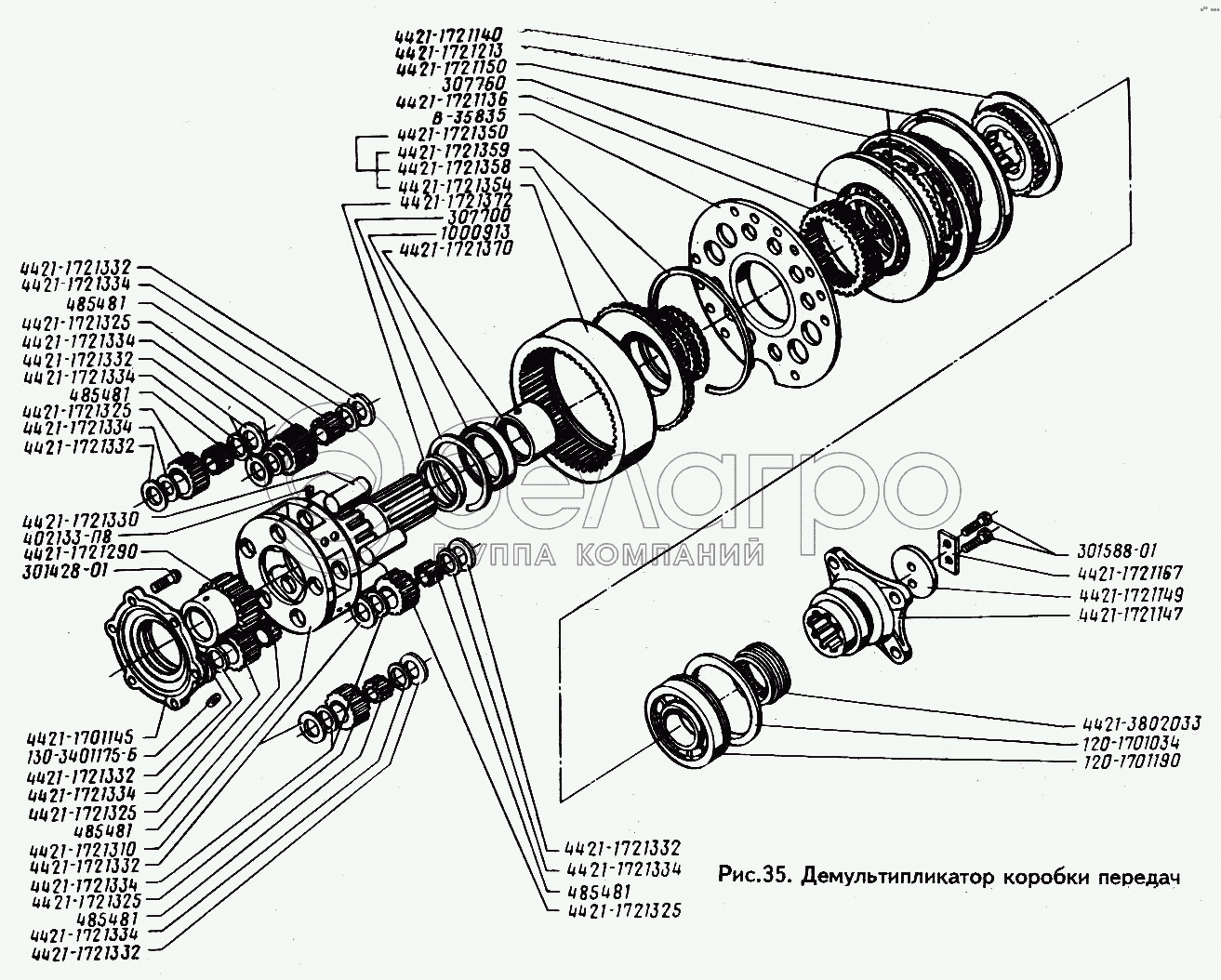 Каталог запасных частей к технике: ЗИЛ-433100. Демультипликатор коробки передач