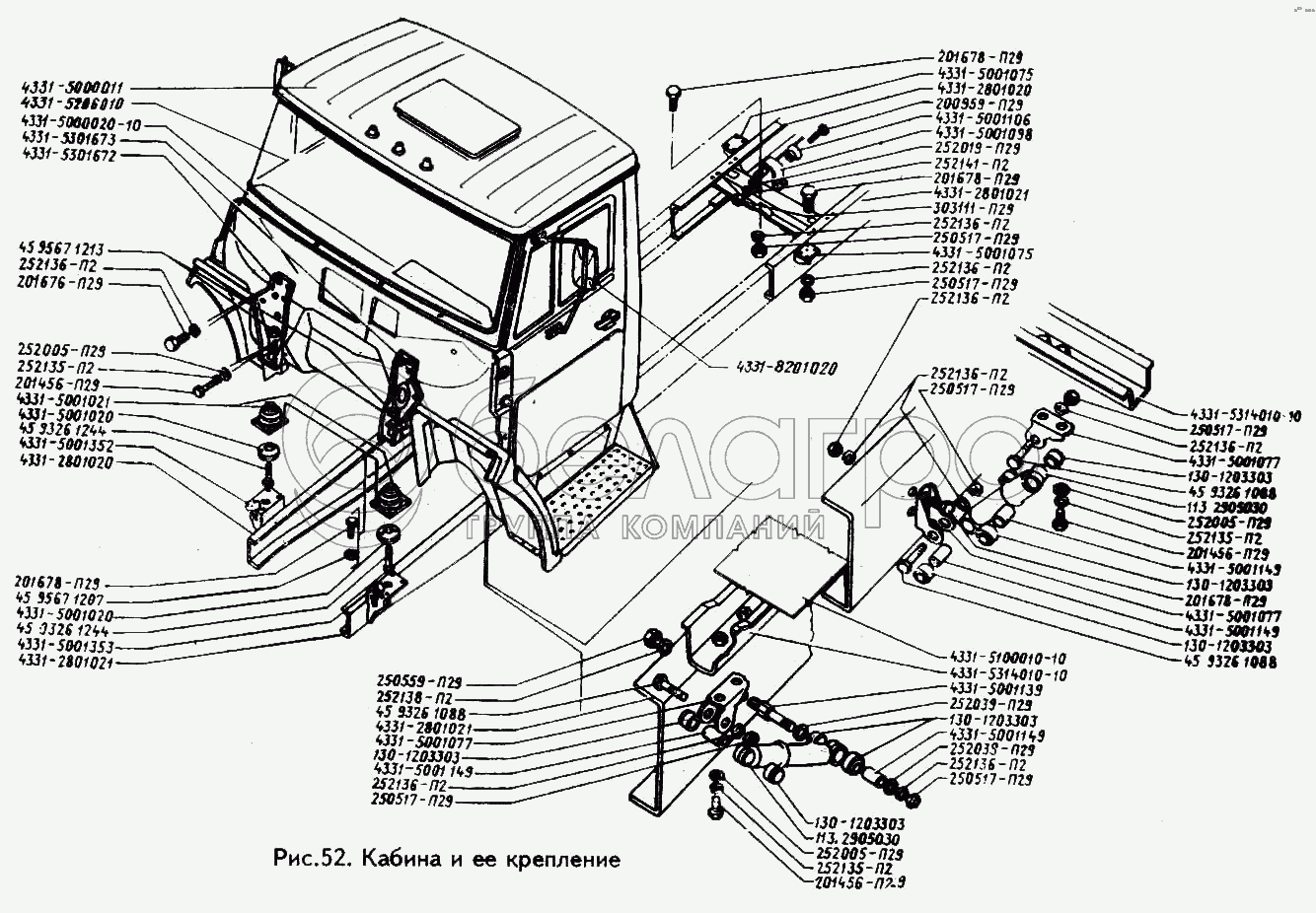 Каталог запасных частей к технике: ЗИЛ-433100. Кабина и ее крепление