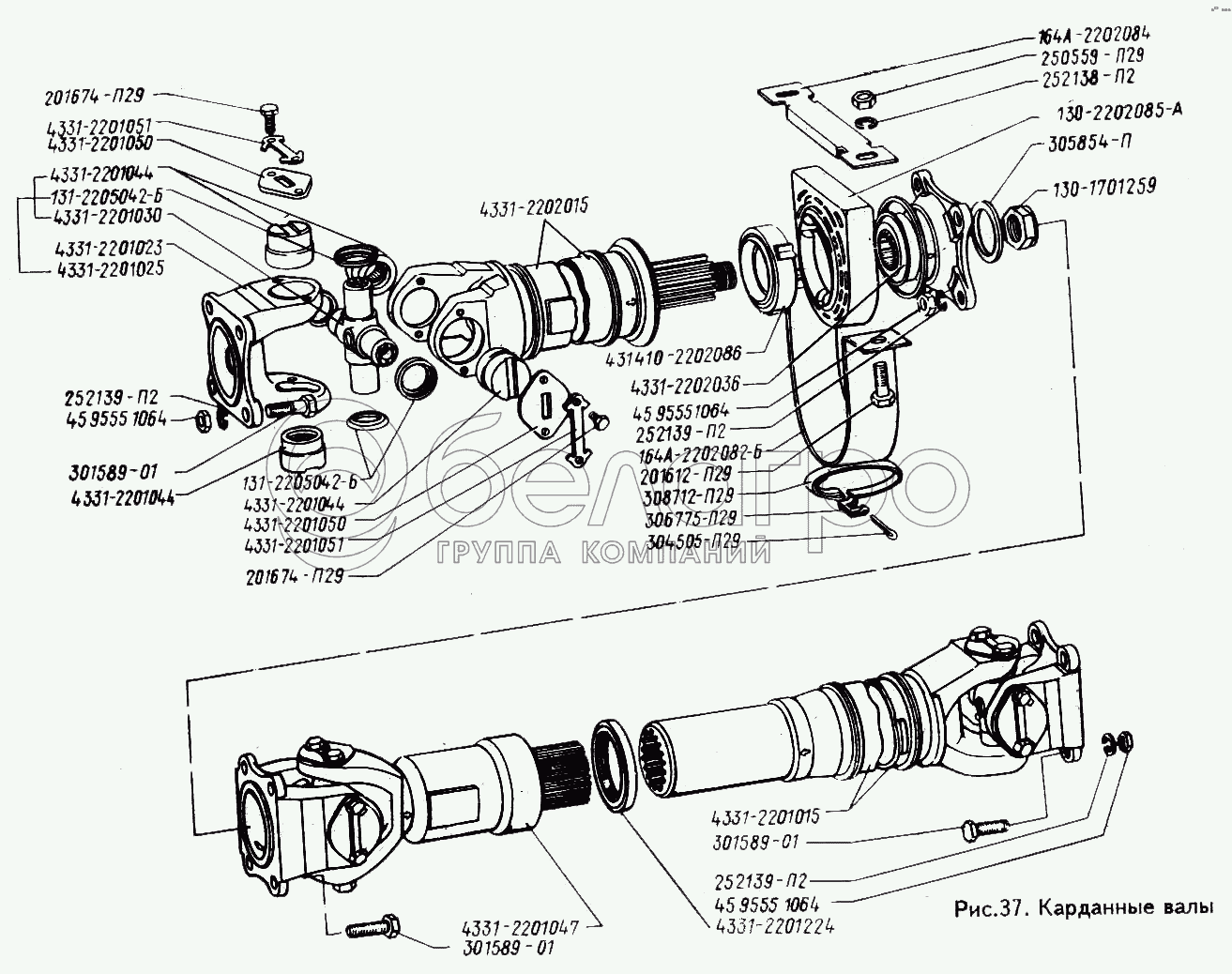 Каталог запасных частей к технике: ЗИЛ-433100. Карданные валы