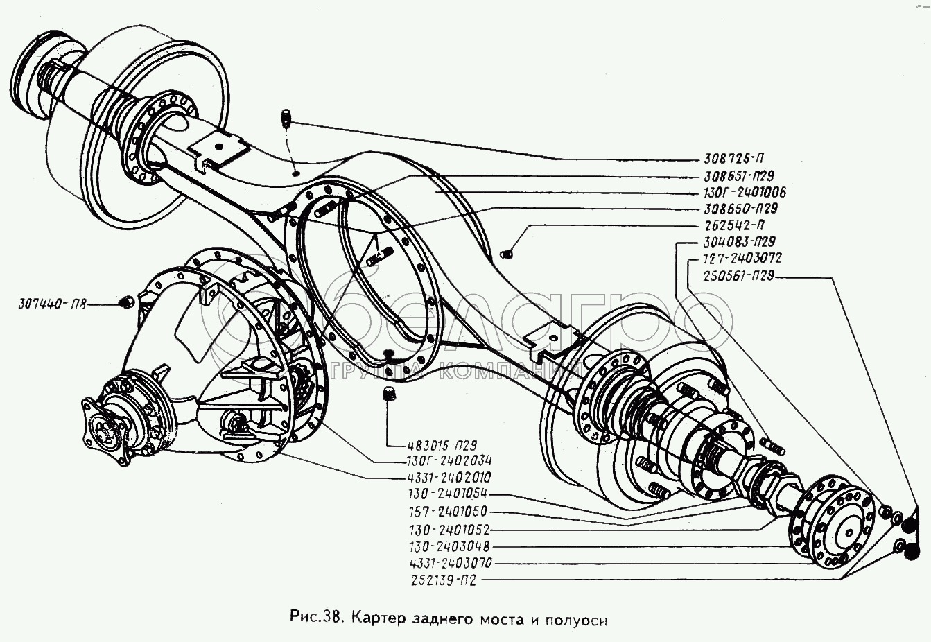Каталог запасных частей к технике: ЗИЛ-433100. Картер заднего моста и полуоси
