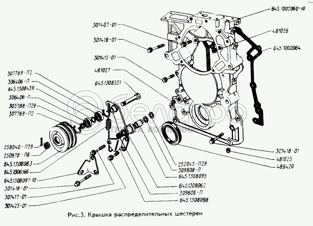 Каталог запасных частей к технике: ЗИЛ-433100. Крышка распределительных шестерен