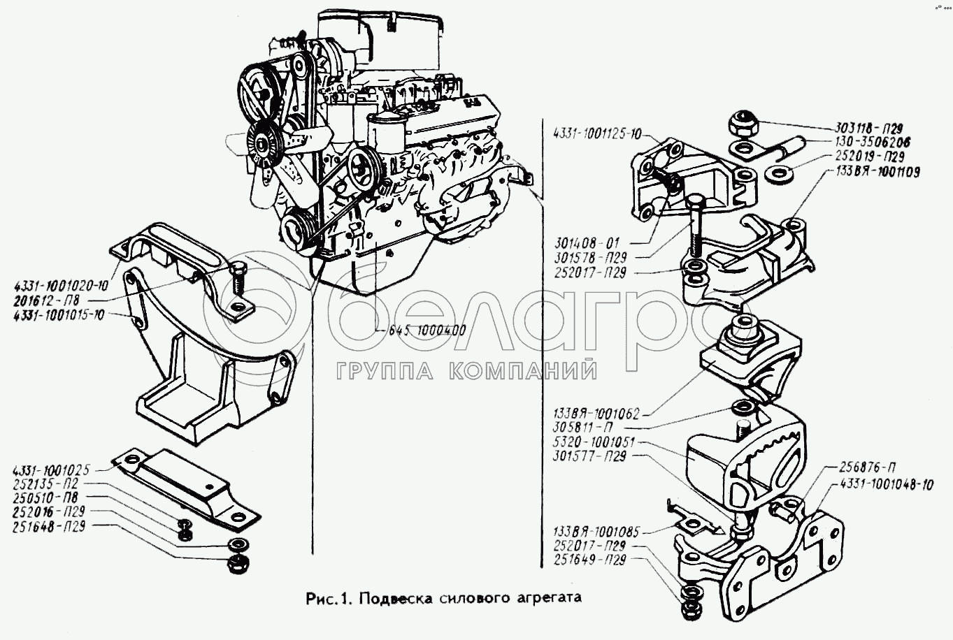 Каталог запасных частей к технике: ЗИЛ-433100. Подвеска силового агрегата