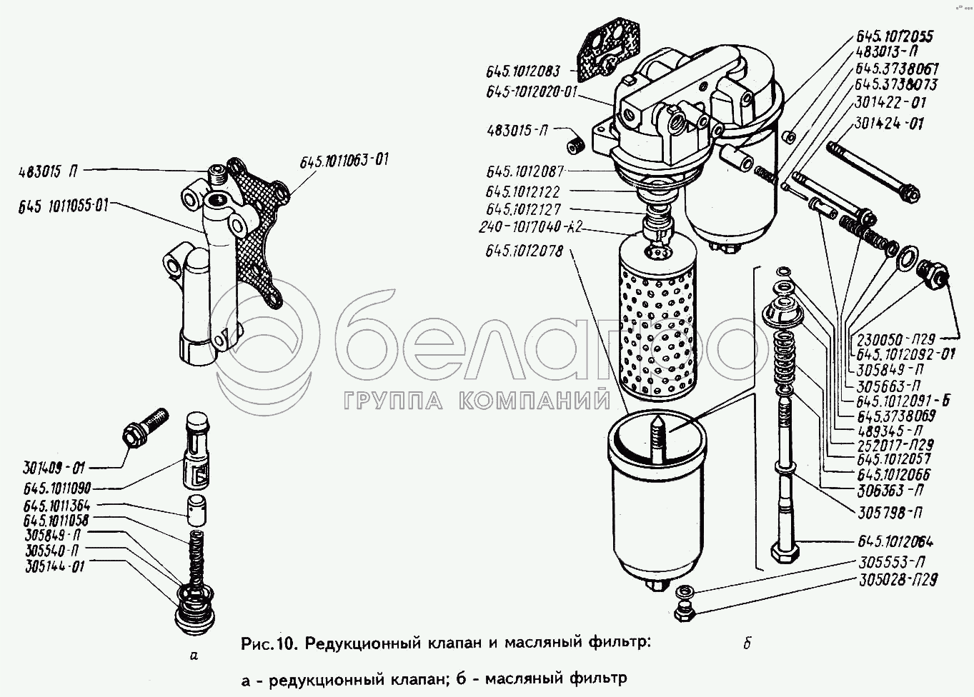 Каталог запасных частей к технике: ЗИЛ-433100. Редукционный клапан и маслянный фильтр