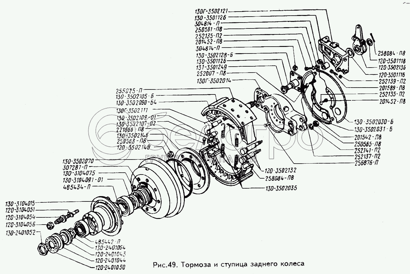 Каталог запасных частей к технике: ЗИЛ-433100. Тормоза и ступица заднего колеса
