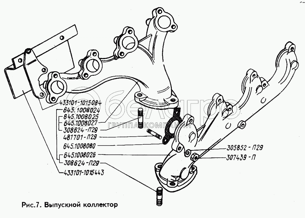 Каталог запасных частей к технике: ЗИЛ-433100. Выпускной коллектор