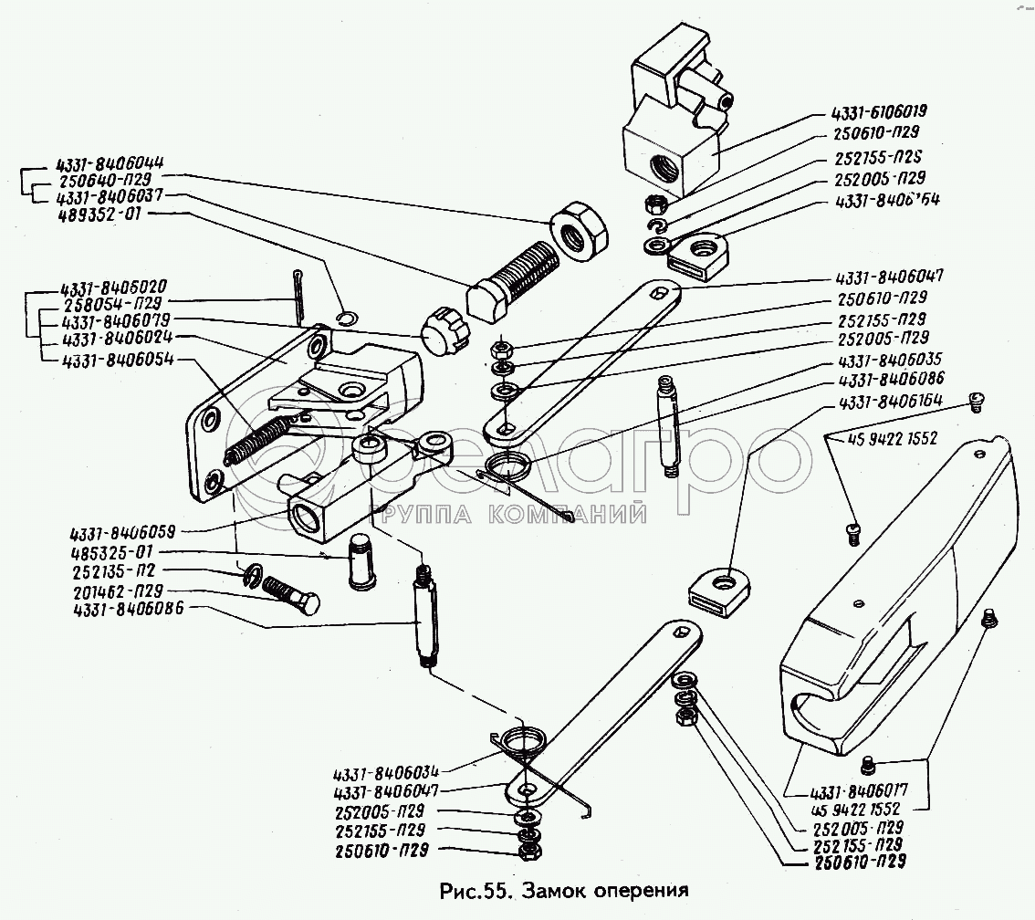 Каталог запасных частей к технике: ЗИЛ-433100. Замок оперения