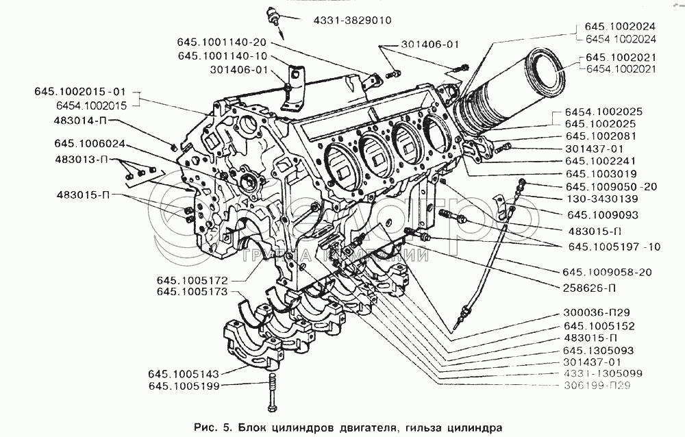 Каталог запасных частей к технике: ЗИЛ-433100. Блок цилиндров двигателя, гильза цилиндра