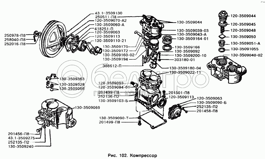 Каталог запасных частей к технике: ЗИЛ-433100. Компрессор