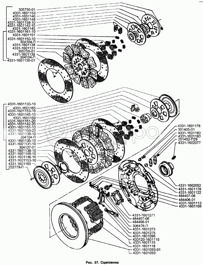 Каталог запасных частей к технике: ЗИЛ-433100. Сцепление