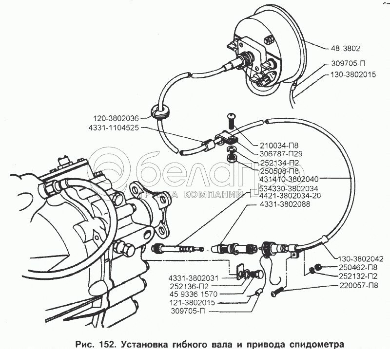 Каталог запасных частей к технике: ЗИЛ-433100. Установка гибкого вала и привода спидометра